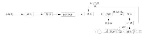 除石灰和碱石灰烧结法外,其他烧结工艺还有盐一苏打混合烧结法,硫酸铵烧结法和硫酸烧结法等。在盐一苏打混合烧结法中,先将粉煤灰和 NaCl- Na2CO3混合烧结,在水中骤冷,再在稀酸溶液中浸出。W.J.McDowell等首次将粉煤灰同 NaCl以及Na2CO3混合物在700~900℃下烧结,烧结产物再用硝酸或硫酸浸出,最终90%~99%的铝得到回收。V.A.Decarlo等使用 CaCl2-Na2CO3和 NaCl-CaCO3烧结粉煤灰,再用水和硝酸溶液浸出,粉煤灰中氧化铝的溶解率分别为78%和74%。 梁振凯等采用CaCl2焙烧活化粉煤灰,焙烧熟料经水洗后,用硫酸溶液浸取以回收粉煤灰中的氧化铝,氧化铝浸取率可达95%以上。吕建燚等利用硫酸铵与粉煤灰混合煅烧,使粉煤灰中的氧化铝与硫酸铵反应生成硫酸铝,再加入氢氧化钠溶液溶解,由此排除 Ca2+和Fe3+的干扰,通人过量的二氧化碳气体以实现硅铝固液分离,得到氢氧化铝,再经煅烧分解得到氧化铝产物。结果表明,利用此工艺从粉煤灰中提取氧化铝的提取率可达96.38%。赵俊梅等研究了以硫酸为配料焙烧粉煤灰,经过水浴溶出使浸出渣和硫酸铝分离,硫酸铝溶液经蒸发浓缩和冷却结晶后,得到硫酸铝晶体。再将硫酸铝晶体放入马弗炉中脱水,在电炉中经高温煅烧,即可获得冶金级A12O3。