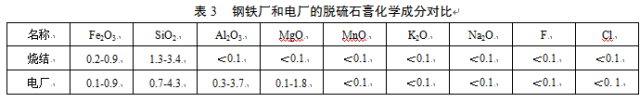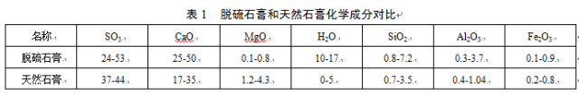 钢铁企业为降低烧结烟气中SO2的排放量,因而采取湿法脱硫工艺对含硫烟气进行处理而产生了一种工业副产石膏即脱硫石膏,烟气脱硫石膏也称作FGD石膏(Flue Gas Desulphurization Gypsum),主要成分与天然石膏相同,均为二水硫酸钙(CaSO4·2H2O),两者品质相当,化学成分见表1。