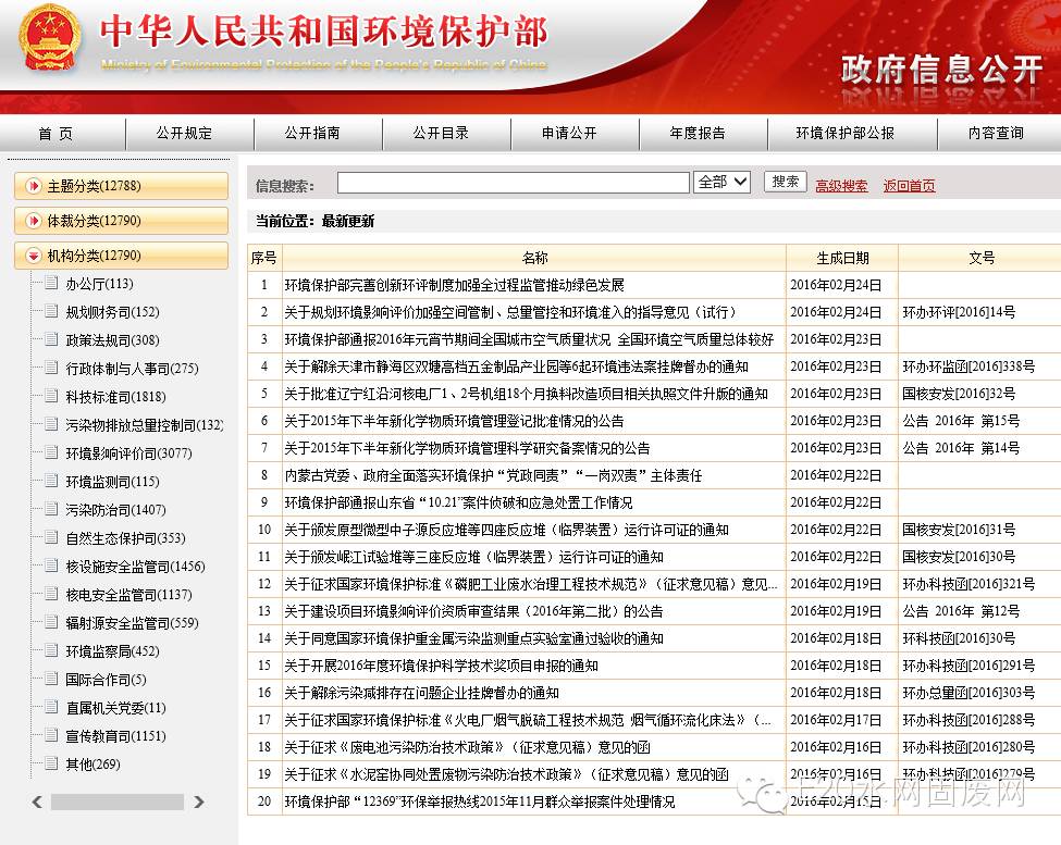 今日,环保部网站发布《环境保护部政府信息公开工作2015年度报告》,对2015年度环保部的信息公开工作予以总结。