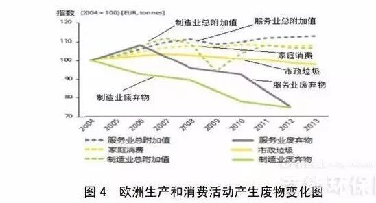 自2004年以来,制造业和服务业领域总体保持经济增长态势,在废弃物产生的绝对数量上呈明显下降趋势,如图4所示。
